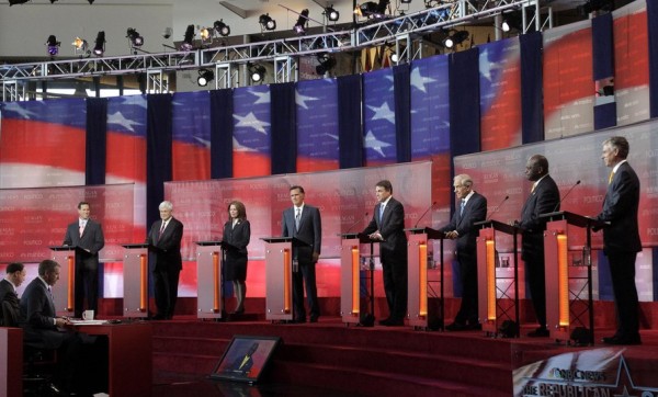 - Gay Rights: There’s was no mention of Don’t Ask, Don’t Tell, the Defense of Marriage Act, benefits for same-sex partners, or any other contentious gay rights issues. Where do the candidates stand on these issues? How many would reinstate Don’t Ask, Don’t Tell? (Michele Bachmann and Rick Santorum have previously said they would.)