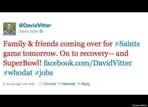 Disgraced Sen. David Vitter (R-La.) announced that he would be skipping the president’s speech to watch the New Orleans Saints’ first NFL game of the season — despite the fact that kickoff is not until 8:30 p.m. ET, while the president will begin his address at 7 p.m.