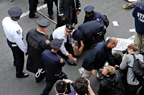 “The cops watched and did nothing, indeed, seemed to guide us on to the roadway,” said Jesse A. Myerson, a media coordinator for Occupy Wall Street who was in the march but was not arrested.