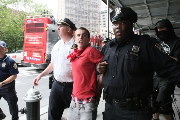 Police start making arrests on New York’s Brooklyn Bridge during Saturday’s march by Occupy Wall Street. Protesters speaking out against corporate greed and other grievances attempted to walk over the bridge from Manhattan, resulting in the arrest of more than 700.